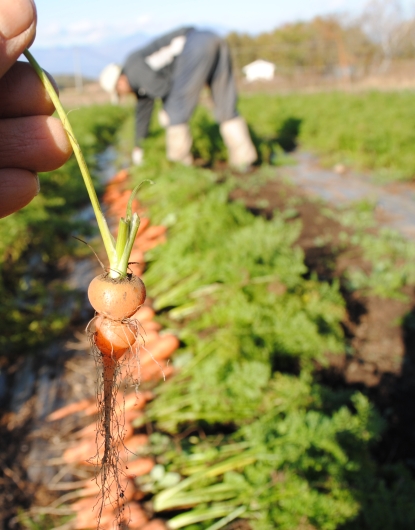 今週は、人参の収穫Weekでした。今年の秋の貯蔵用人参は、初期に葉が病気にかかり葉の一部が枯れてしまいました。後に復活したものの、その遅れを取り戻すことができずに、小さめの人参が多くなってしまいました…。